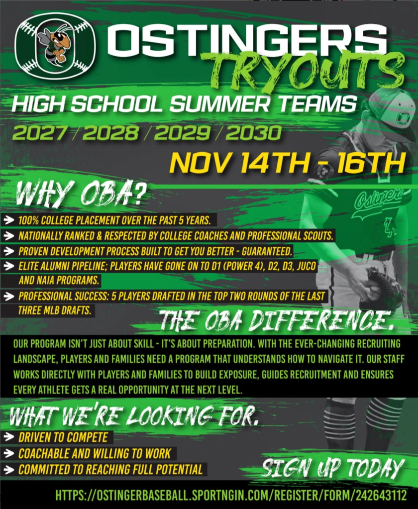 All 2027, 2028 , 2029 , 2030 Grads who would like to be a part of Ostingers Baseball Program